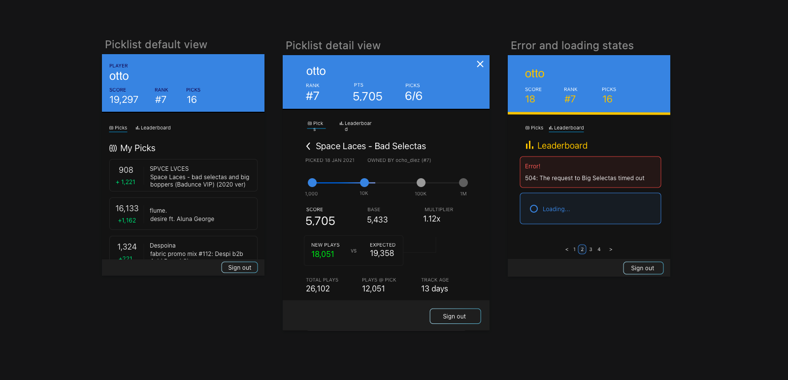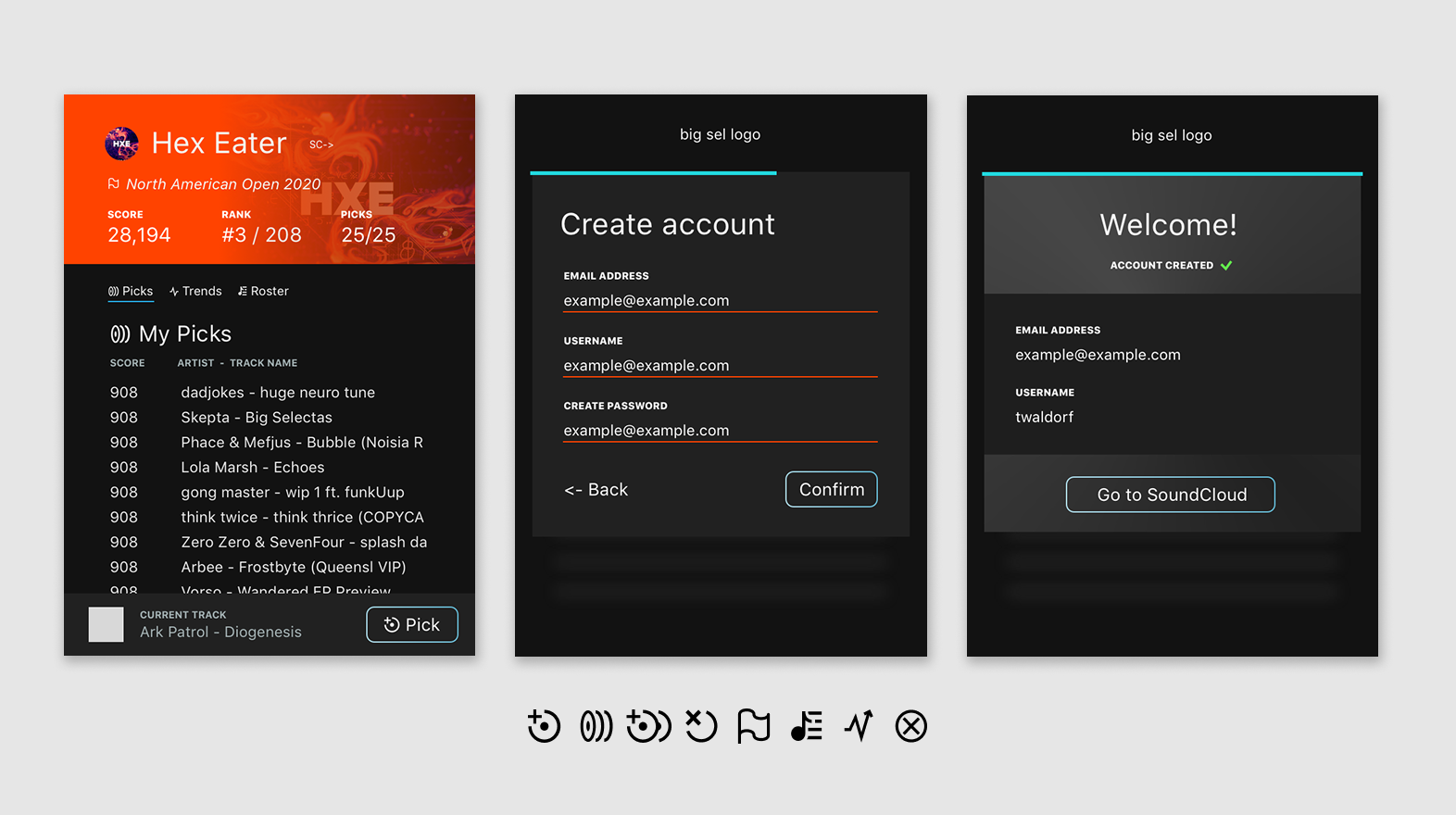 Branding, UI/UX, and React implementation for a Fantasy Football-for-Soundcloud game Chrome extension.